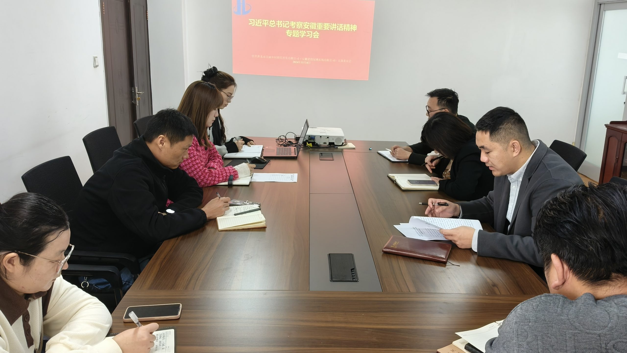 11月4日上午,美麗鄉(xiāng)村(綠地農(nóng)場)黨支部召開專題學(xué)習(xí)會,學(xué)習(xí)習(xí)近平總書記考察安徽重要講話精神,以及省委、市委有關(guān)會議精神。支部副書記趙倩倩主持會議。